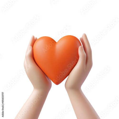 3D hands holding a red heart anatomy on an isolated white background.