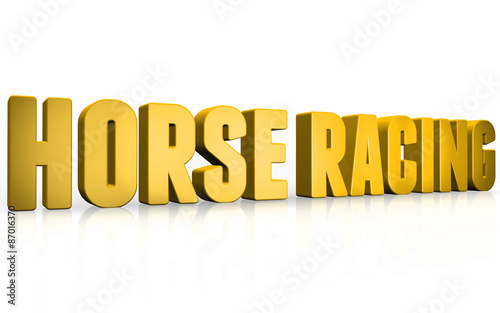 3D horse racing text on white background