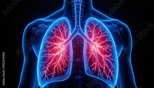 lung, respiratory, system, medicals, health, science, technology, three-dimensional, rendering, anatomy, x-ray, glow, blue, red, human, body, organ, biology, medicine, health care, illustration, digital, futuristic, innovation, research, education, diagnostic, treatment, disease, infection, breathing, oxygen, vascular, network, vein, artery, transparent, background, dark, contrast, vibrant, detailed, hi-res, modern, professional, infographic, concept, abstract, visualisation