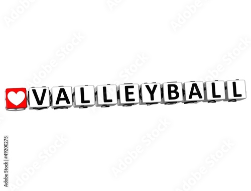 3D I Love Valleyball Game Button Block text on white background