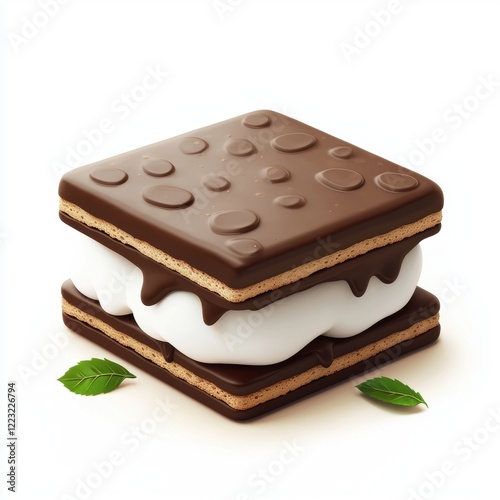 3D icon cartoon ice cream sandwich with chocolate cookies, isolated on a white background