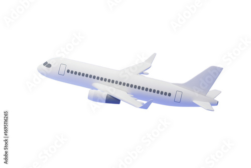 3d icon of a white passenger airplane in midflight, isolated on transparent background