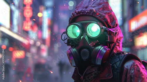 3D Illustration of a Cyberpunk Girl in a Futuristic Setting