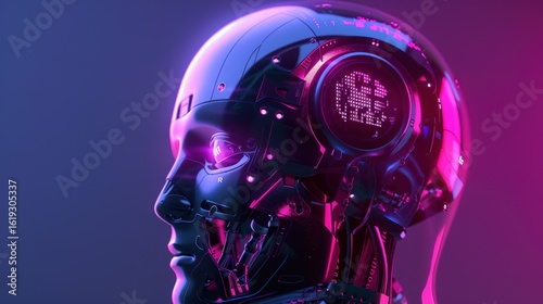 cinematic, cyber, cyberspace, fiction, future, futuristic, glow, glowing, hardware, hero, intelligence, model, neon, party, punk, robot, science, tech, virtual, copy space, cyborg, hacking, head, person, face, female, fluorescent, light, new, portrait, science fiction, space, technology, ultraviolet, character, creative, fashion, pink, background, violet, illustration, modern