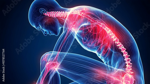 3D Illustration of Human Body with Spine Pain