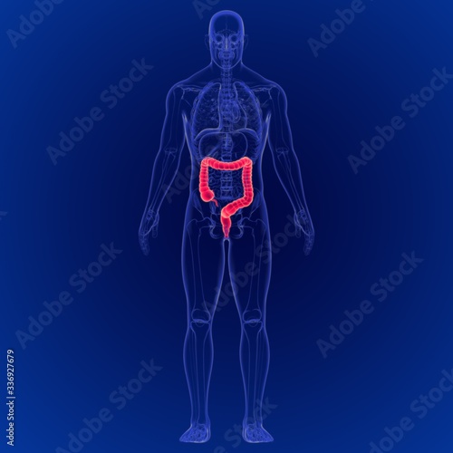 3D Illustration of Human Digestive System Large Intestine Anatomy