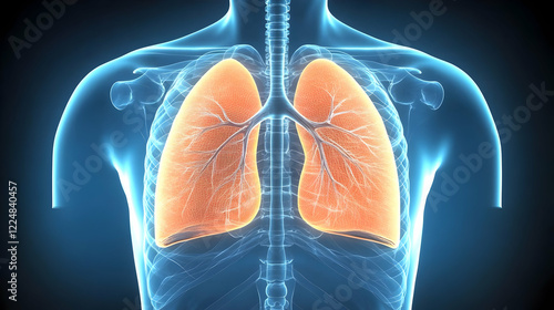 3D Illustration of Human Lungs and Respiratory System Anatomy Displaying Detailed Structure