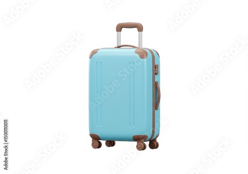 3D Illustration of Light blue suitcase with brown accents isolated on white background