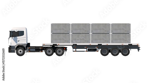 three-dimensional, architecture, bulk, cargo, commercial, concrete, construction, construction industry, construction site, culvert, delivery, digital artwork, distribution, hard-wearing, efficient, engineering, freight, grey, heavy machinery, industrial, industry, infrastructure, large, logistic, massive, material, modern, no people, realistic, rendered, semi-truck, shipping, half face, strong, trailer, truck, trucking, vehicle