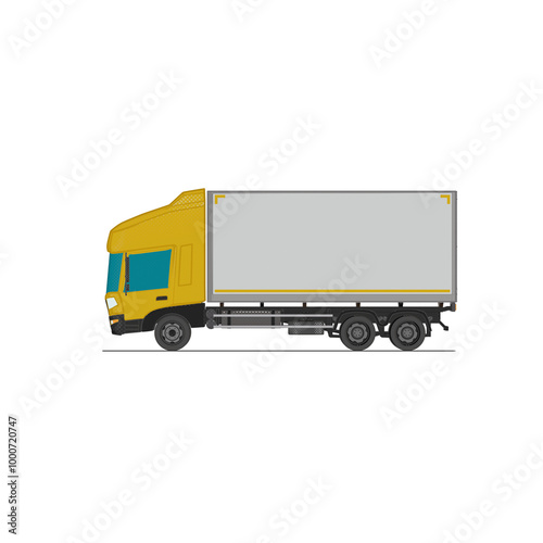 3D Isometric Cargo Truck Half Tone Vector Illustration Modern YellowCabine and White Van Intercity Delivery Vehicle 6x4Design for Logistics Transport Presentation Social Media Video Promo Left