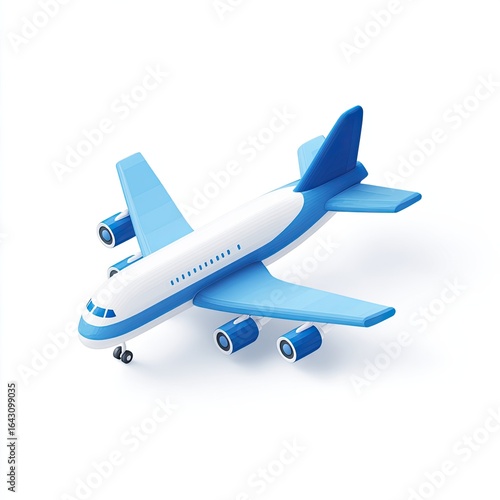 aeroplane, jet, aircraft, transport, travel, flight, passenger, commercial, aviation, blue, white, isometric, three-dimensional, illustration, modern, engine, wing, tail, body, landing, perspective, transportation, air, tour tourism, journey, sky, fast, technology, flying, model, realistic, design, shape, form, geometry, vehicle, turbine, wheel, aerodrome, cargo, global, connection, future, graphic