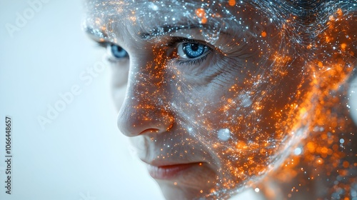 closeup, face, futuristic, technology, overlay, solitude, ageing, wrinkle, innovation, digital, advanced technology, senior, female, alone, datum, detail, high technology, modern, solitary, expression, wisdom, overwhelm