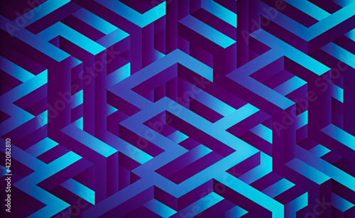 3D maze, 3D labyrinth rendering, abstract futuristic maze, isometric dark purple maze rendering. Futuristic metallic cyberspace labyrinth illustration