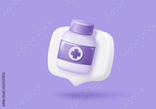 3d medical medication bottle with plus icon. Vaccination medical equipment, healthcare, medicine minimal concept. medical pharmacy medicament. 3d medicine cure icon vector render illustration