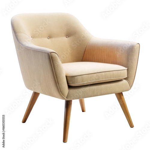 3d mid century armchair with tufted back isolated on transparent background