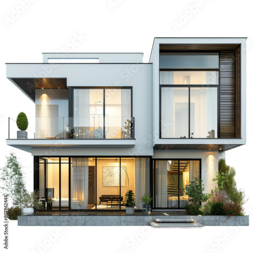 3D Modern House Exterior, Isolated on a Transparent Background