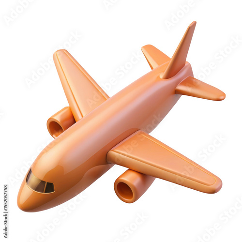 three-dimensional, aeroplane, icon, isolated, transparent, background, orange, aircraft, aviation, travel, transportation, flight, aeroplane, jet, wing, engine, tail, modern, simple, glossy, render, graphic, element, symbol, design, illustration, commercial, airline, vacation, journey