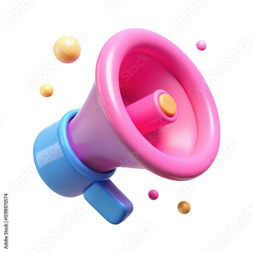 three-dimensional, megaphone, loudspeaker, announcement, communication, promotion, advertising, sound, alert, vintage, retro, pink, blue, sphere, floating, abstract, object, render, realistic, clean, design, isolated, transparent, background, graphic, digital, art, marketing, concept, icon