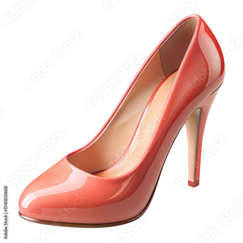 three-dimensional, high, heel, pump, coral, shoe, footwear, fashion, realistic, render, transparent, background, isolated, object, clean, design, model, stock, image, commercial, use, product, glossy, elegant, stiletto, pink, red
