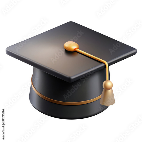 three-dimensional, graduation, cap, mortarboard, academic, hat, gold, black, realistic, render, model, high, resolution, transparent, background, isolated, object, stock, image, commercial, use, clean, design, product, education, ceremony, achievement, success, icon, symbol, illustration, graphic, dark, grey, accent, isometric, view