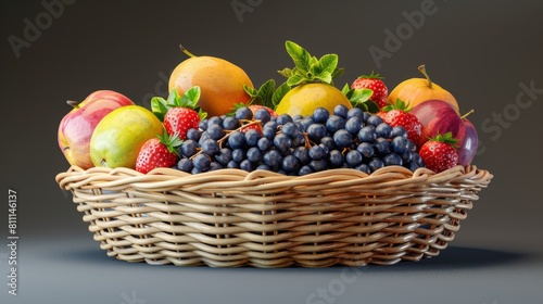 3D realistic image of a fruit basket, clean lighting, isolated on background