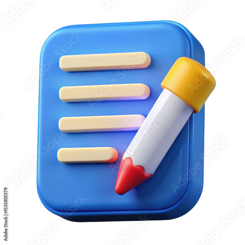 three-dimensional, note, icon, crayons, app, realistic, render, blue, cream, line, red, yellow, model, transparent, background, isolated, object, clean, design, commercial, use, stock, image, product, vector, graphic, illustration, digital, art, notepad, editing, writing