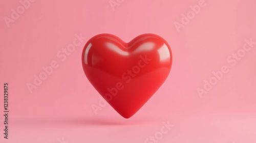 3D Red Heart Floating on a Soft Pink Background Symbolizing Love and Affection.