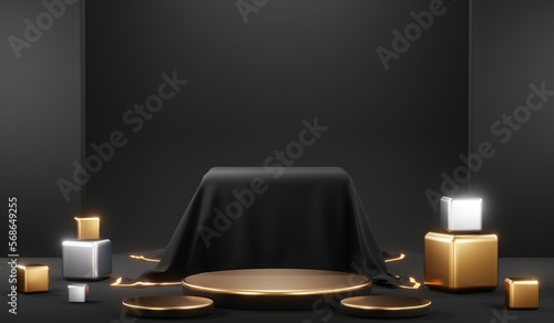 space, graphic, creative, banner, layout, object, show, dark, decoration, frame, template, premium, empty, beauty, geometric, background, blank, concept, platform, minimal, modern, stage, showcase, cylinder, illustration, gold, design, presentation, display, product, scene, sale, friday, black, luxury, shape, glistering, gold, dais, racked, pedestal, round, room, studio, realistic, abstract, render