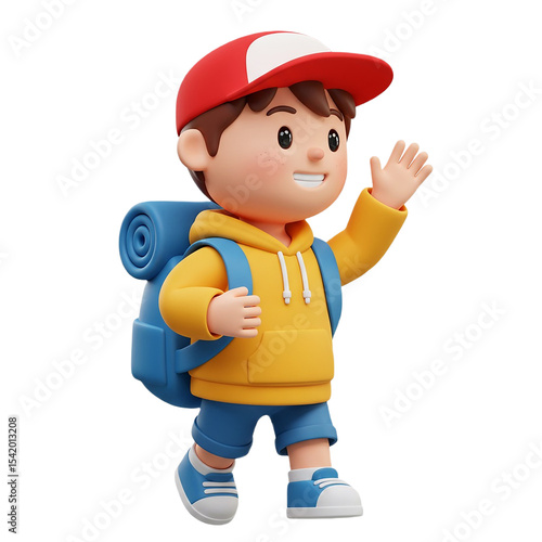 3D Render Boy Traveler Backpack Adventure Cartoon Character Illustration
