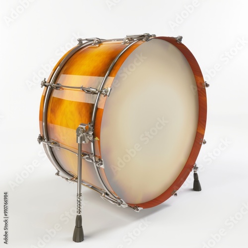 3D Render, Low Poly style of a bass drum with a large, round head and sturdy stand, on isolated white background