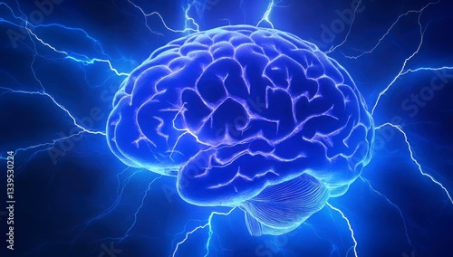 3D render of a brain with a lightning blue background