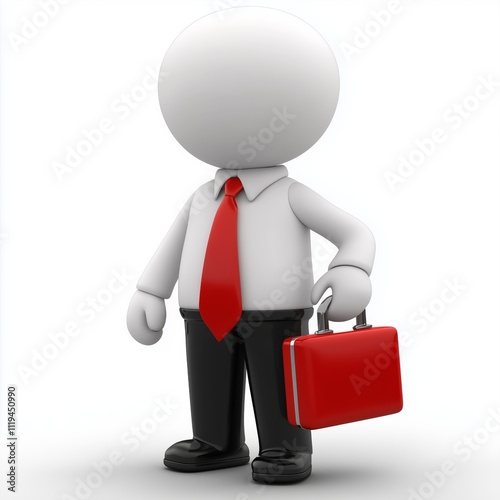 3D render of a business person icon with red tie and briefcase, symbolizing professionalism, corporate identity, and business concepts.