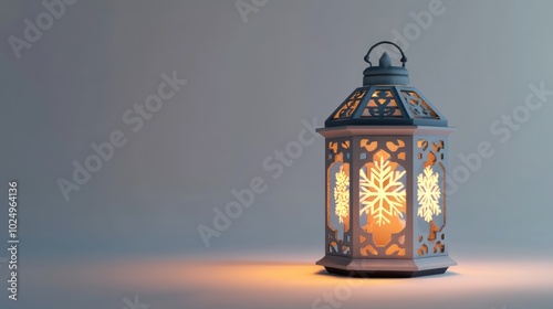 3D Render of a Snowflake Lantern on White Background. AI generated illustration.
