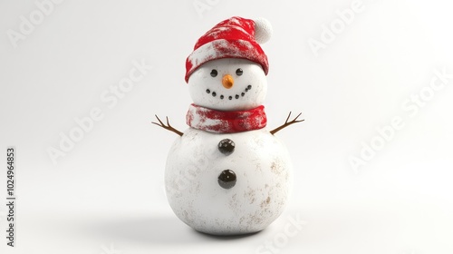 3D Render of a Snowman Sculpture on White Background. AI generated illustration.