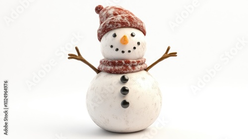3D Render of a Snowman Sculpture on White Background. AI generated illustration.