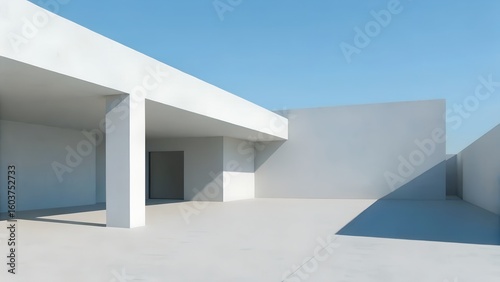3d render of abstract modern architecture - Minimalist Structure, Architectural Contrast, Abstract, Conceptual, Clean Lines, Concrete Design, Sunlight Pattern"