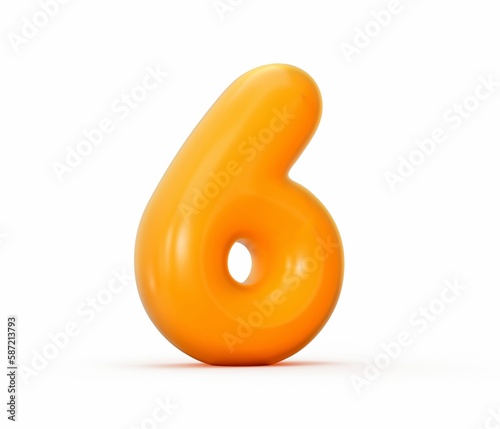 3D render of an orange jelly number 6 isolated on a white background 3d illustration