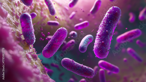 3D render of bacteria colonies thriving in moist sponge pores, household hygiene concept