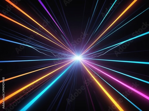 3d render of flash neon and light glowing on dark scene Speed light moving lines