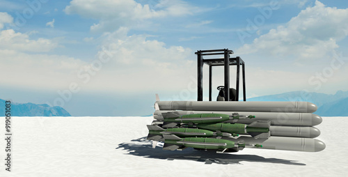 three-dimensional, render, forklift, carrying, missile, desert, copy space, industry, outdoors, day, area, landscape, nature, rural, digitally, generated, image, illustration, shape, motor, vehicle, danger, weapon, cruise, missile, remote, war, defense, threat, rocket, armed, nobody, equipment