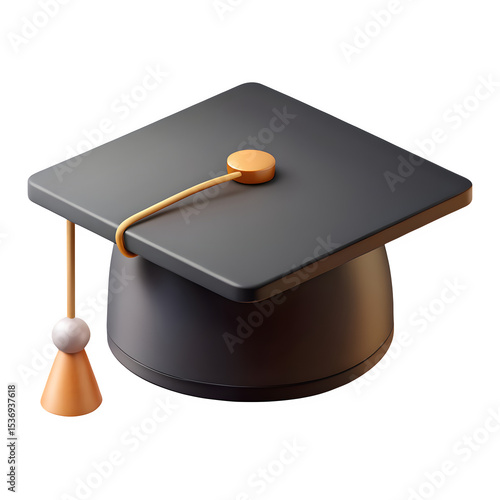 graduation, cap, mortarboard, academic, education, learning, school, college, university, degree, diploma, student, icon, symbol, three-dimensional, render, model, realistic, illustration, design, element, graphic, web, app, isolated, transparent, background, black, grey, orange, gold, dark, modern, minimal, simple, clean, elegant, achievement, success, cognition, wisdom, celebration, ceremony, commencement, hat, graduate, vector