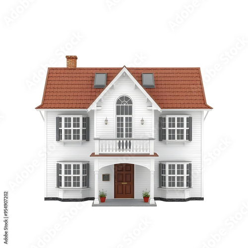 3D render of house front isolated on transparent background. Real estate vector illustration.