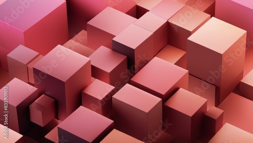 3D Render of Innovative Tech Background Coral and Pink Multisized Blocks