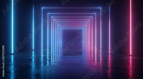 3D render of neon glowing lines in blue and pink colors