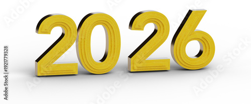 3D render of the year 2026 in golden numerals against a clean white backdrop. Perfect for representing future events, go