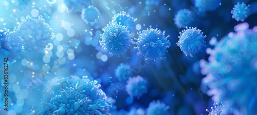 virus, cell, microscopic, infection, biology, medicals, science, health care, closeup, blue, realistic, disease, virology