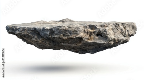 3D Rendered Floating Rock Isolated on White Background with Detailed Textures and Shadows