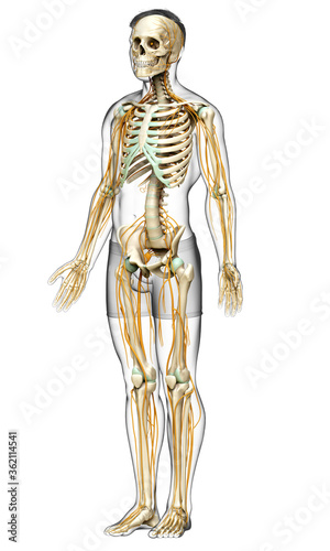 3d rendered medically accurate illustration of the nervous system and skeleton system