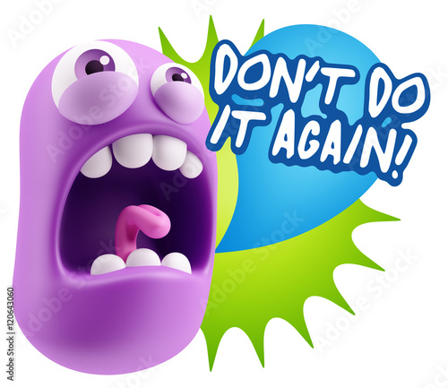 3d Rendering Angry Character Emoji saying Don't Do It Again with