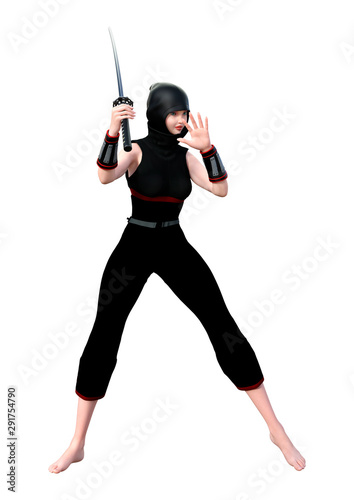 3D Rendering Female Ninja on White